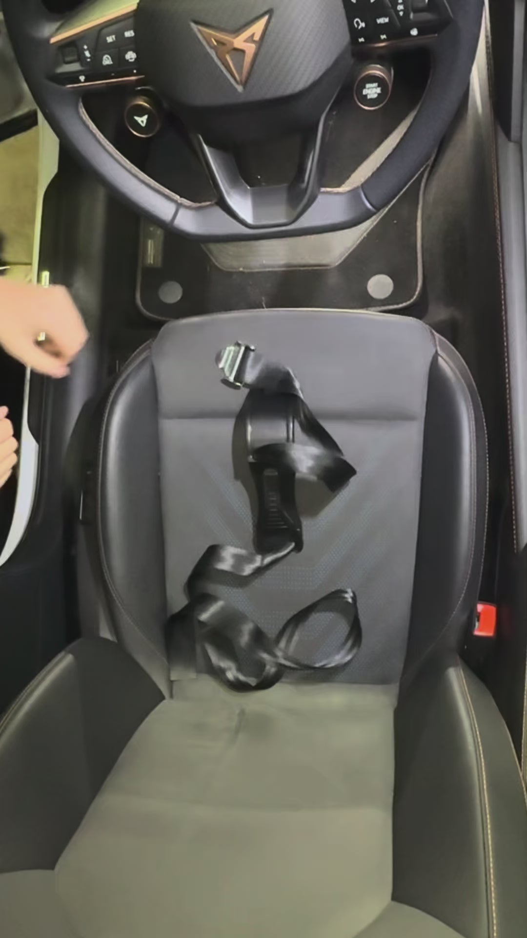 Coloca el dispositivo sobre el asiento del coche, asegurándote de que la hebilla metálica de fijación quede orientada hacia arriba y posicionada como se muestra en la imagen.